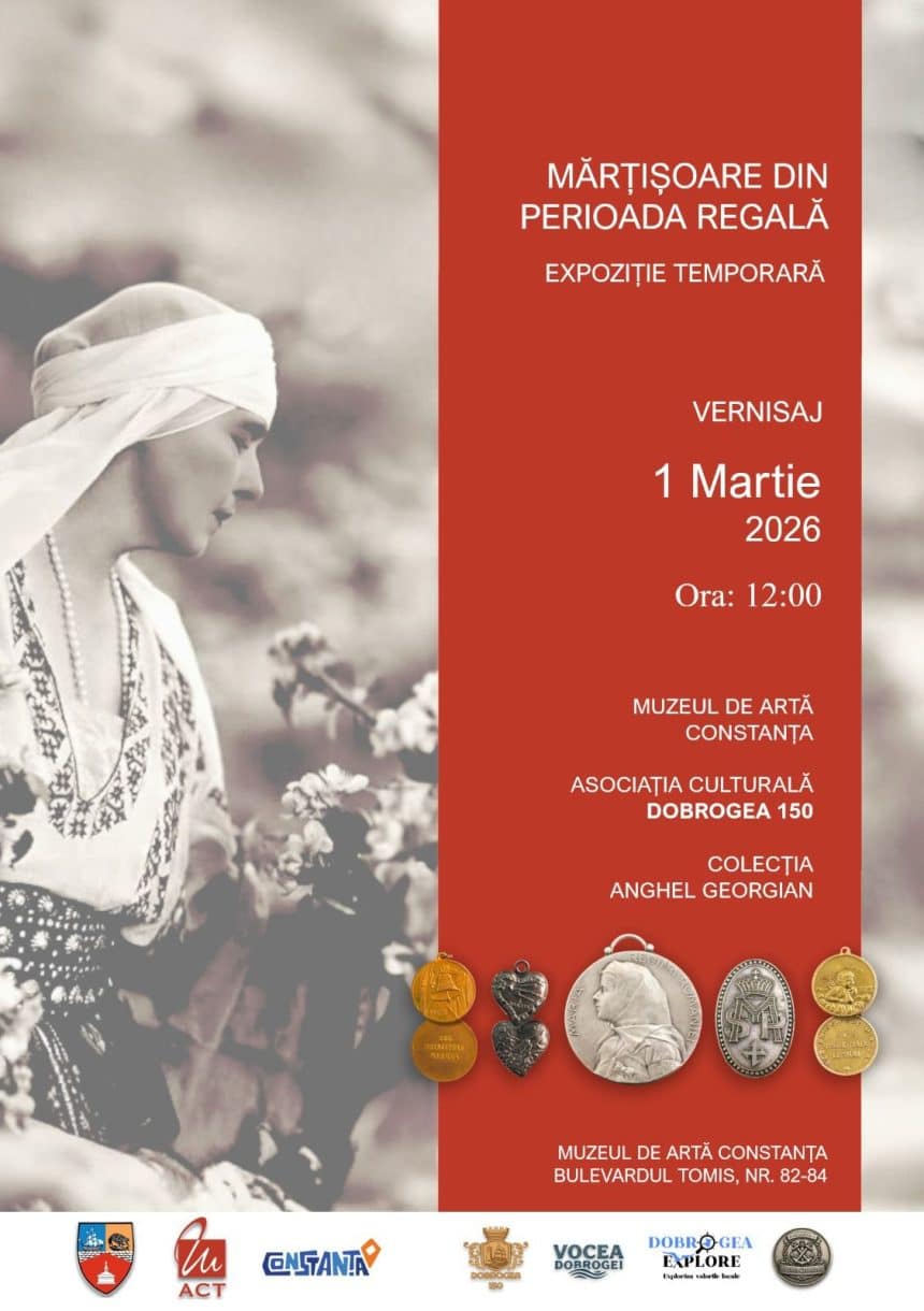 Duminică, 1 martie 2026, ora 12:00, Muzeul de Artă Constanța în parteneriat cu Asociația Dobrogea 150, organizează expoziția „Mărțișoare din perioada Regală”, dedicată transformării mărțișorului dintr-un simbol tradițional al primăverii într-un obiect artistic și un mijloc de susținere a unor cauze sociale și naționale.