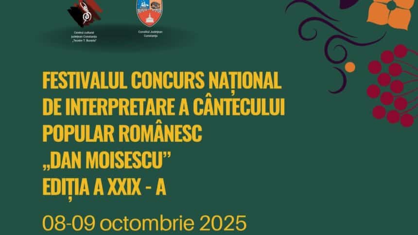Consiliul Județean Constanța, prin Centrul Cultural Județean „Teodor T. Burada”, organizează în perioada 8-9 octombrie 2025 cea de-a XXIX-a ediție a Festivalului Concurs Național de Interpretare a Cântecului Popular Românesc…