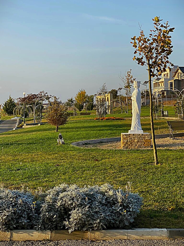 ◾ Alei, pergole și foișoare oferă locuri de plimbare sau odihnă. Parcul include și un joc de maxi-șah în aer liber, o atracție inedită pentru vizitatorii de toate vârstele.